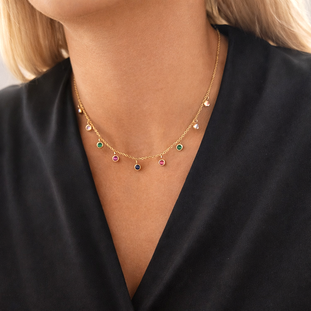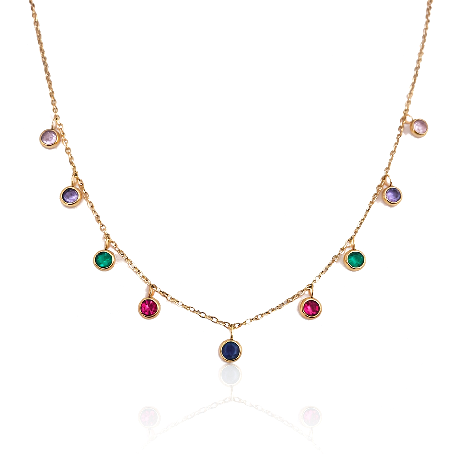 Lubisz klasyczne, ale modne wzory? Ten cudowny naszyjnik idealnie wkomponuje się do Twoich stylizacji. Delikatny model z kolorowymi kryształkami prezentuje się niebanalnie i uroczo. Wpisze się do wielu stylizacji, zarówno do koszul, swetrów czy głębszych dekoltów.