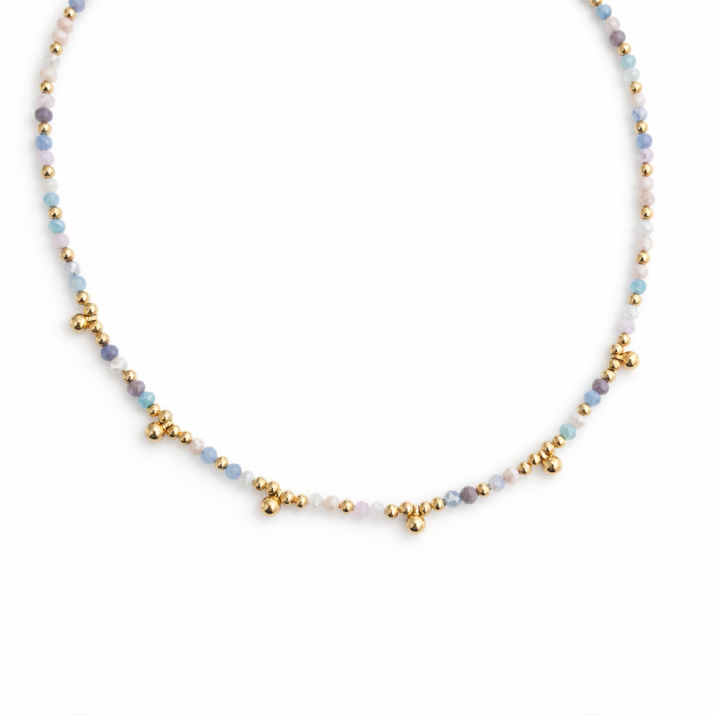 Naszyjnik choker niebieskie koraliki kuleczki złote STAL POZŁACANA