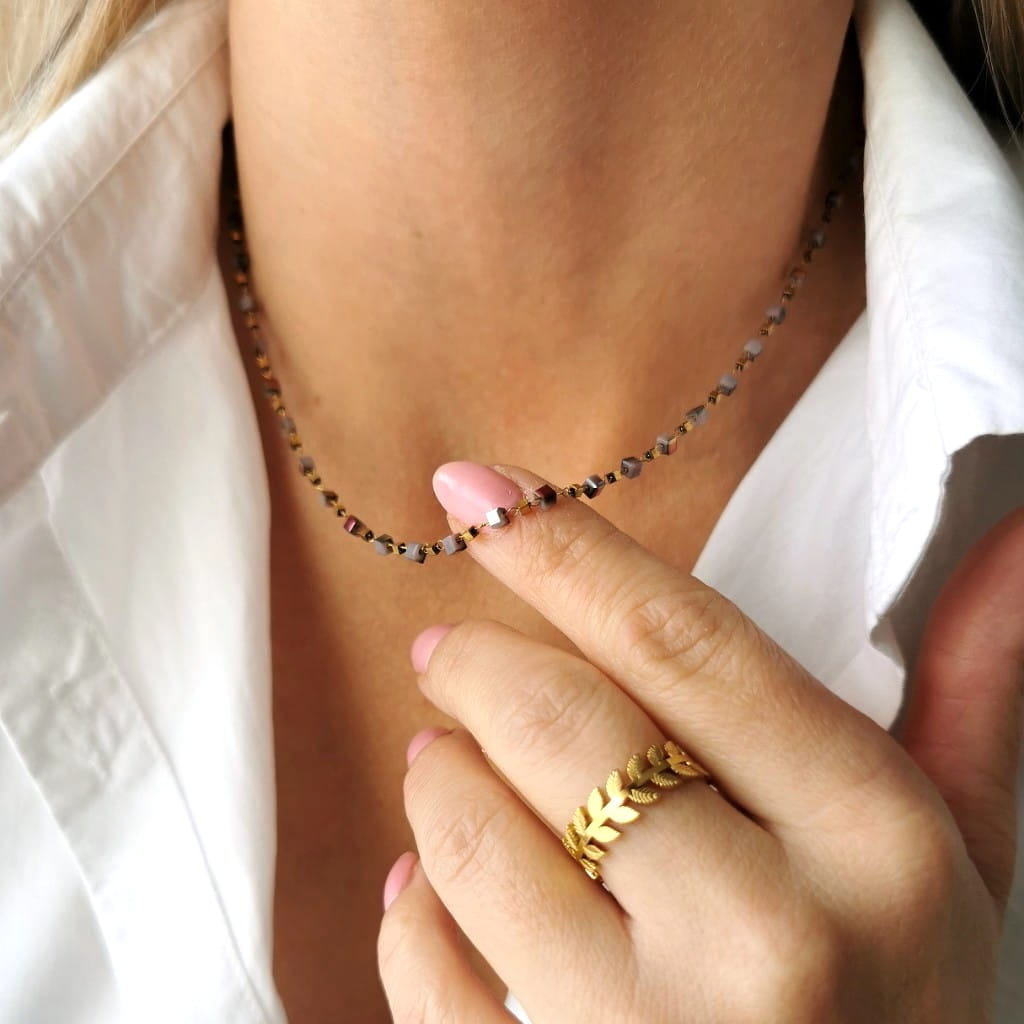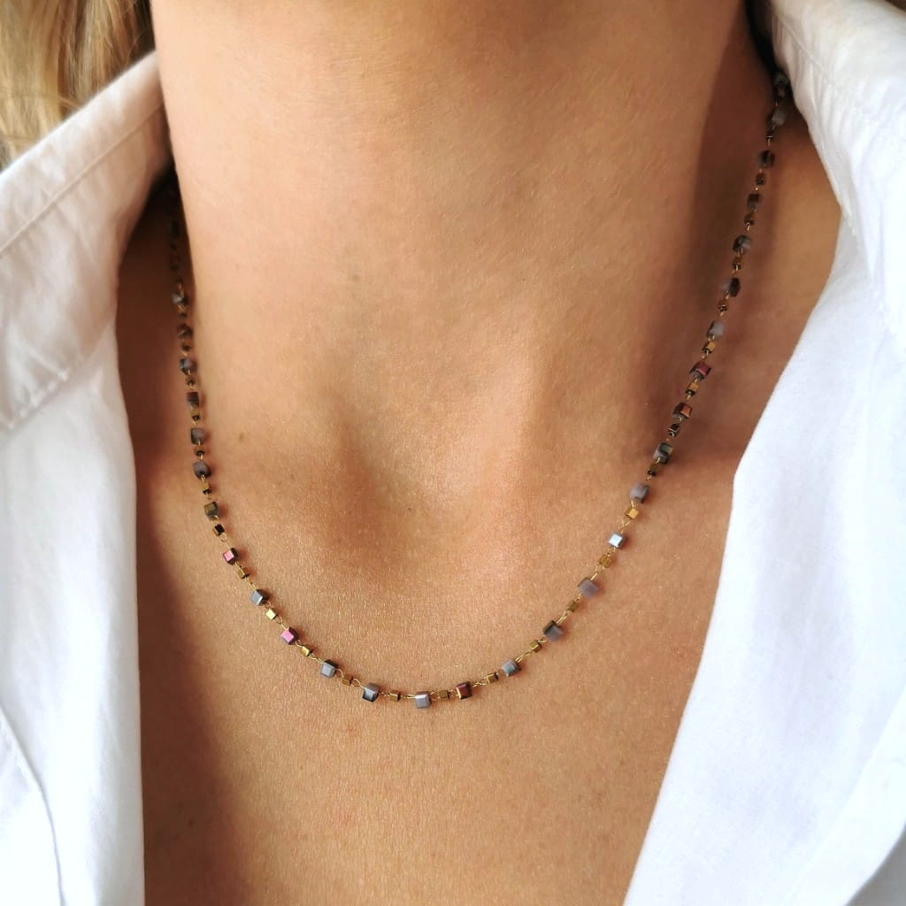 Naszyjnik z opalizującymi koralikami. Pięknie prezentuje się na żywo i przyciąga uwagę. Dodatek, który sprawi, że każda stylizacja będzie stylowa i z klasą.