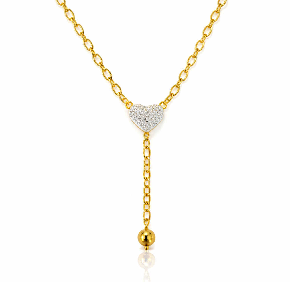 Naszyjnik łańcuch serce cyrkonie POZŁACANA STAL