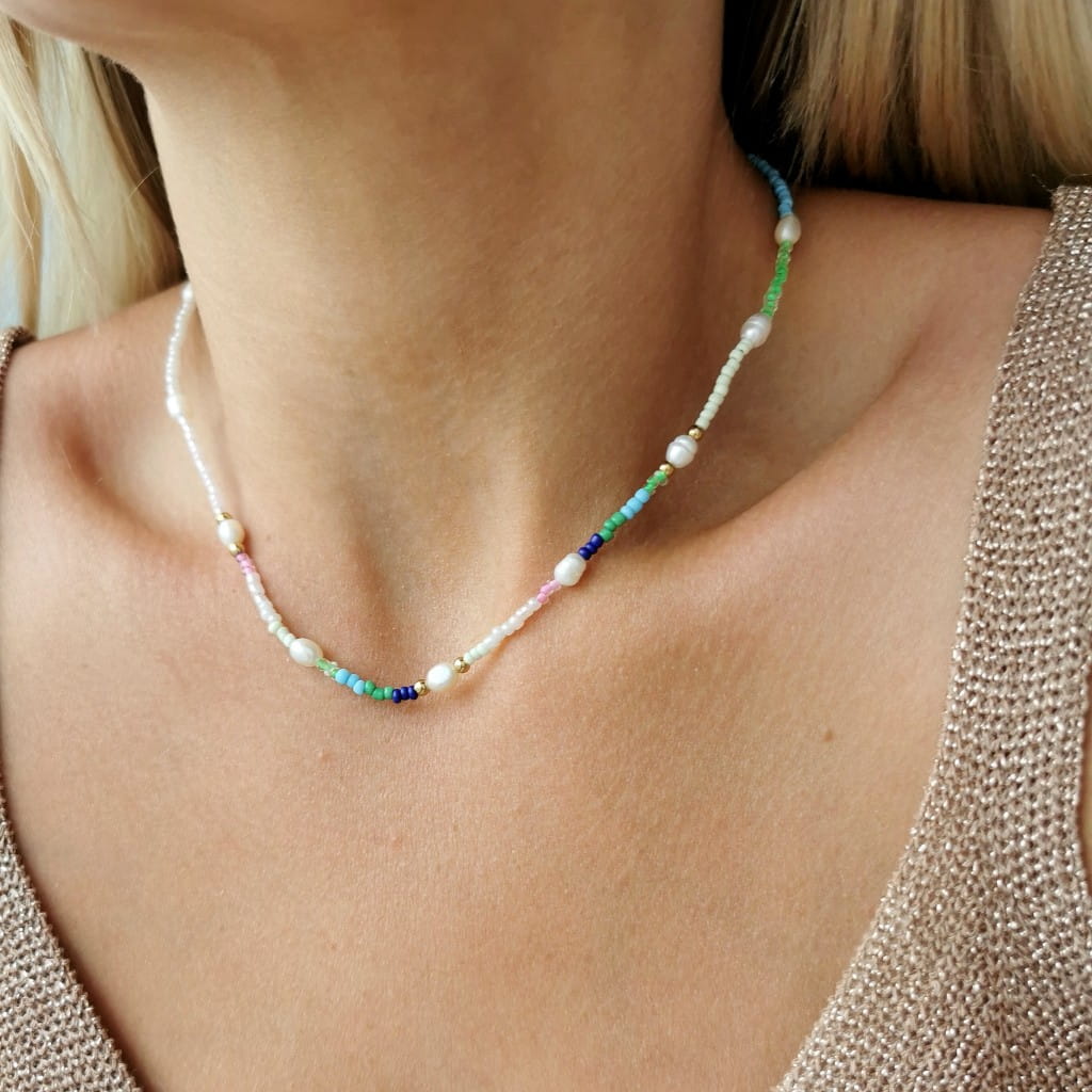 Stylowy naszyjnik z najnowszej kolekcji, wykonany z wysokiej jakości stali chirurgicznej 316l, w kolorze złota. Naszyjnik stal szlachetna z delikatnymi perłami i kolorowymi kokralikami. Pięknie prezentuje się na żywo i przyciąga uwagę. Modny motyw sprawia, że każda stylizacja będzie stylowa i z klasą.