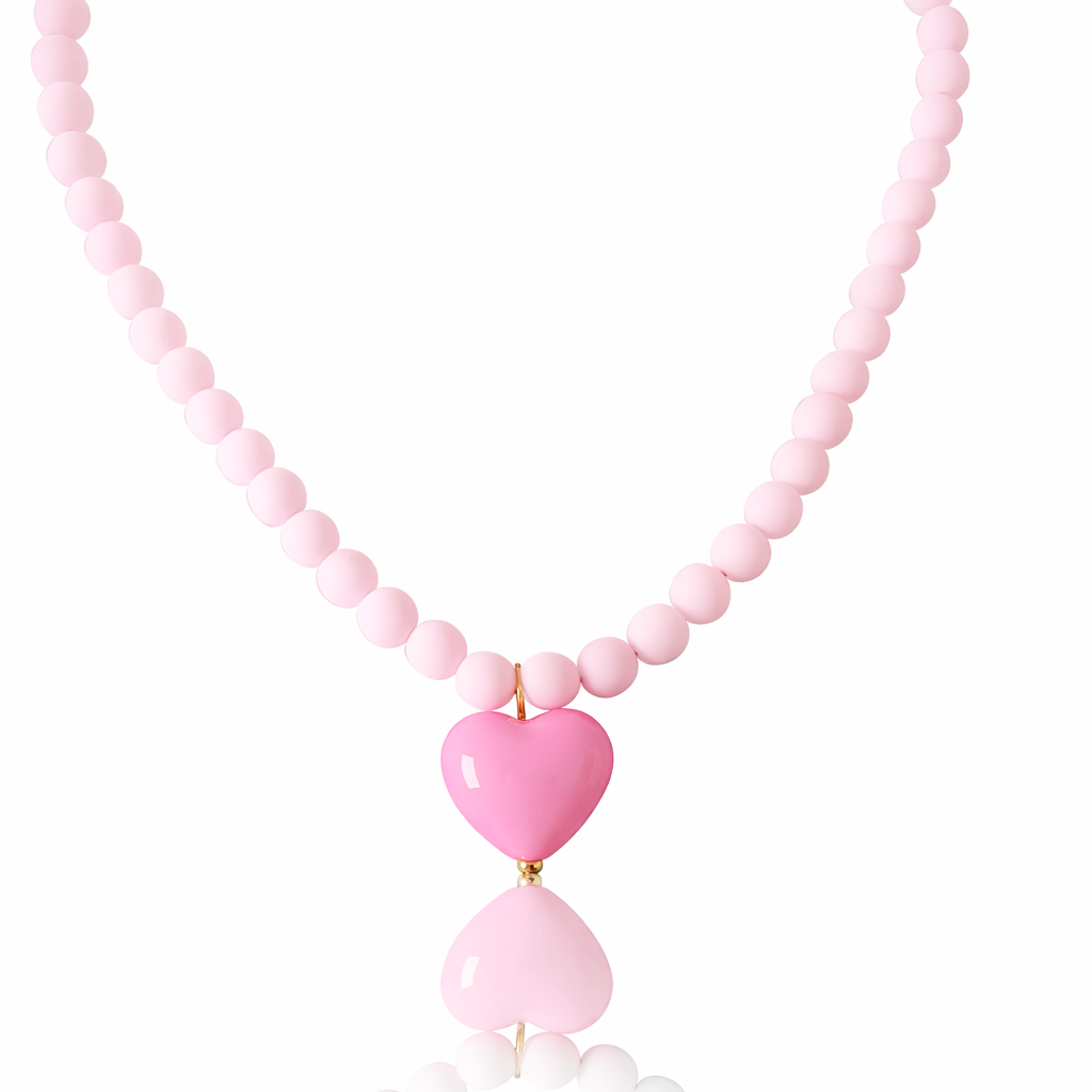 Słodki i stylowy naszyjnik z różowym dmuchanym serduszkiem i różowymi kuleczkami. Hit na sezon wiosna/lato, który ożywi Twoje stylizacje i doda im wdzięku. Do letniego topu czy koszuli sprawdzi się idealnie.