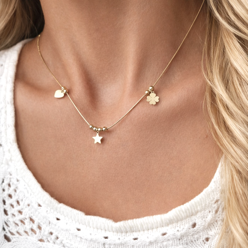 Naszyjnik koniczyna serce gwiazdka zawieszki STAL POZŁACANA
