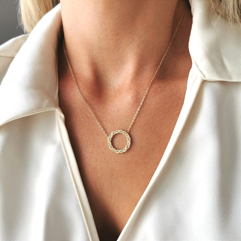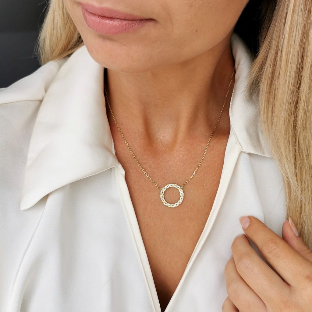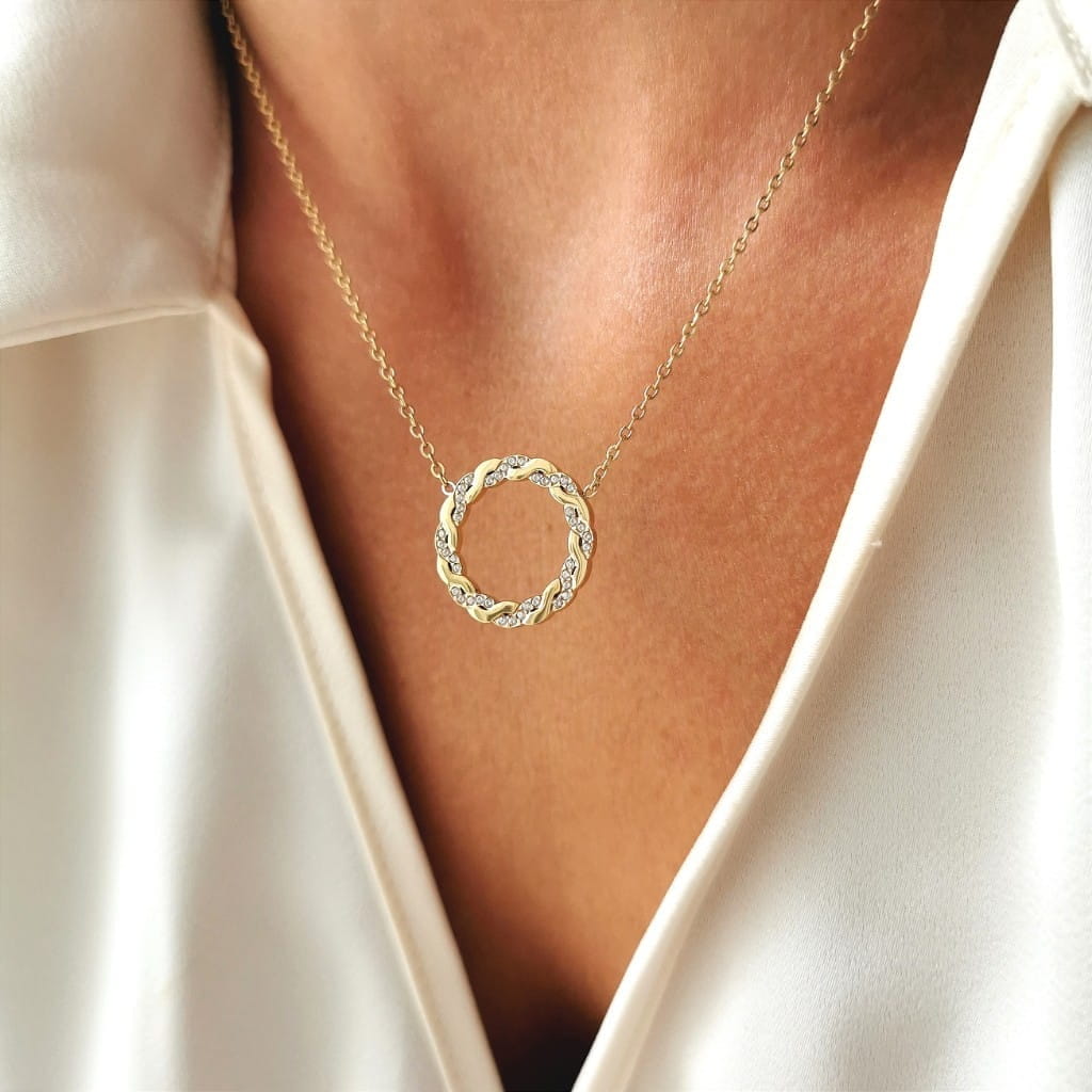 Naszyjnik ze STALI CHIRURGICZNEJ kółko plecione z kryształami kolor złoty