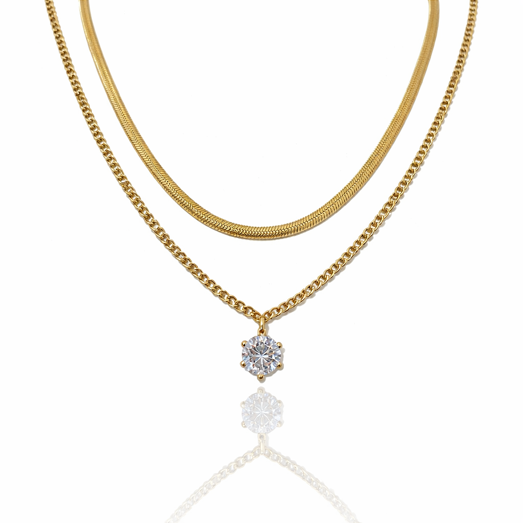 Pozłacana 14 karatowym złotem celebrytka z najnowszej kolekcji SOHO Biżuteria. Naszyjnik o podwójnym, naszyjnik płaski typu żmijka oraz klasyczny łańcuszek z fasetowanym kryształem. Model idealny do wiely stylizacji.