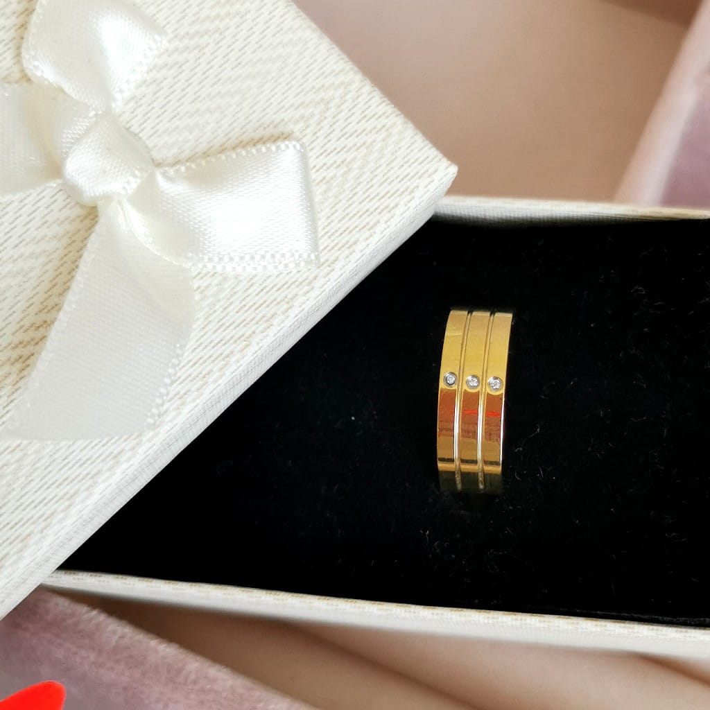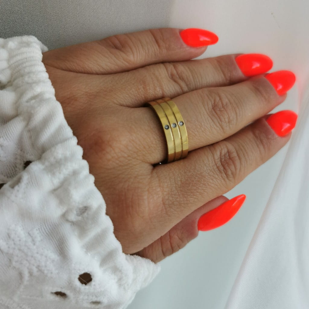 Pierścionek STAL CHIRURGICZNA obrączka szersza kryształki kolor złoty Blueberry
