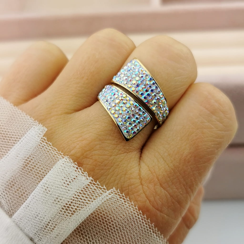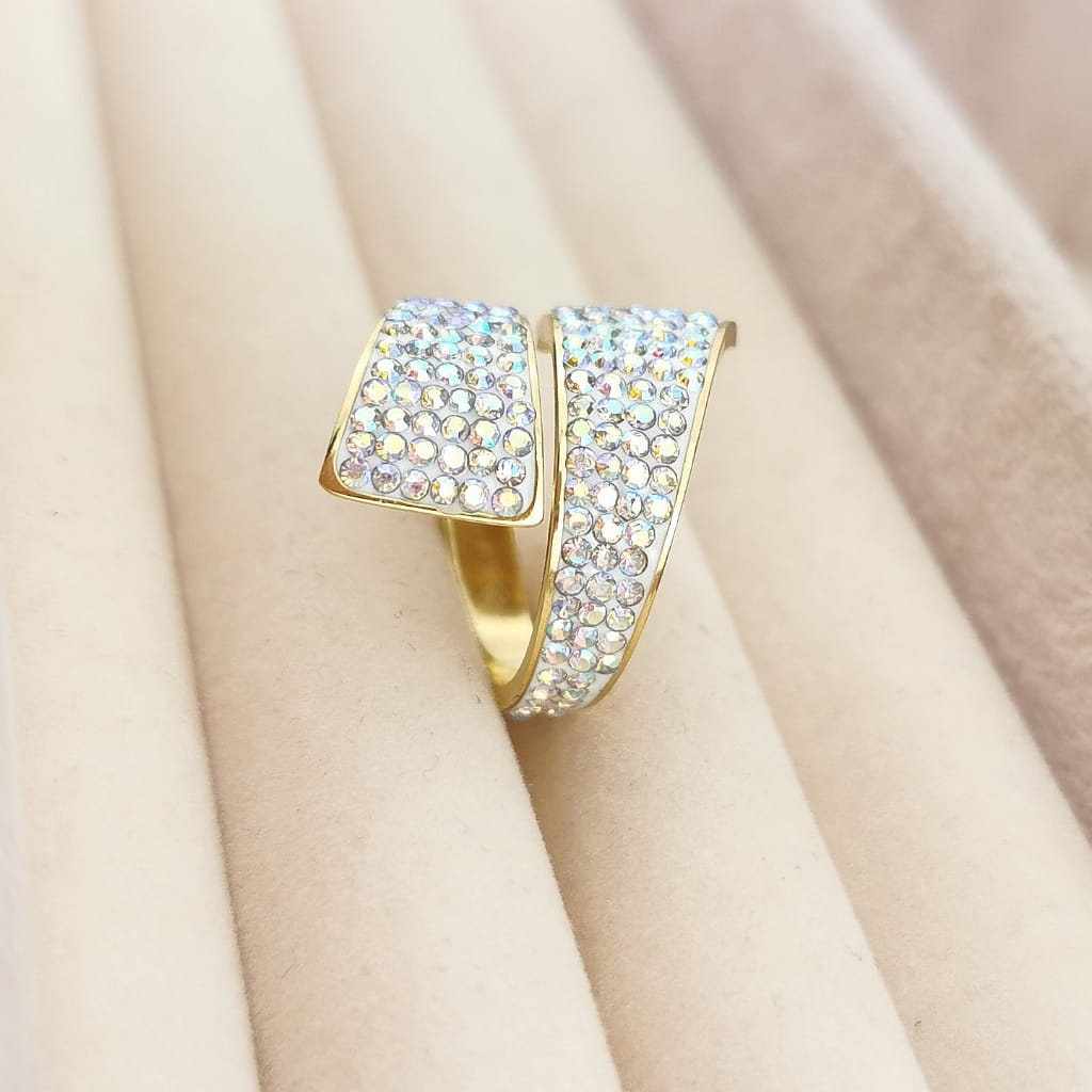 Pierścionek obrączka POZŁACANA STAL opalizujące kryształki kolor złoty