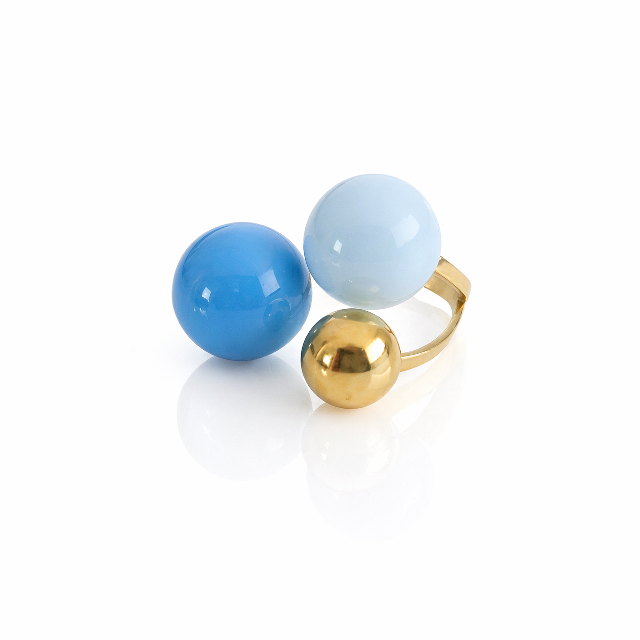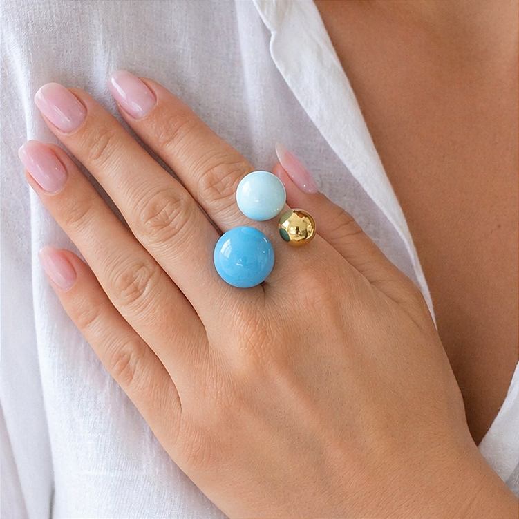 Pierścionek z emaliowanymi kulami niebieski POZŁACANA STAL
