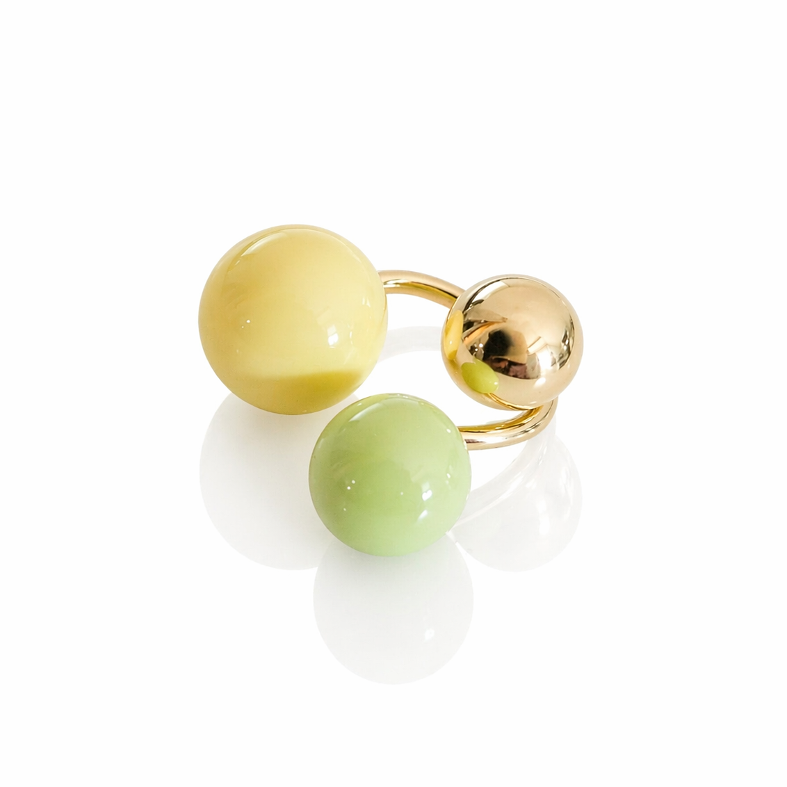 Pierścionek z emaliowanymi kulkami zielony żółty POZŁACANA STAL