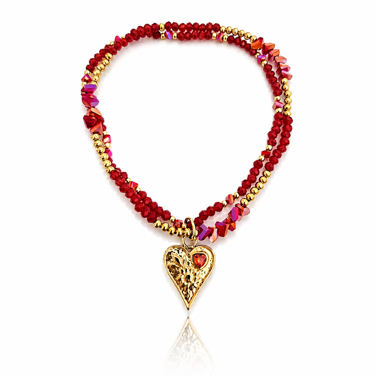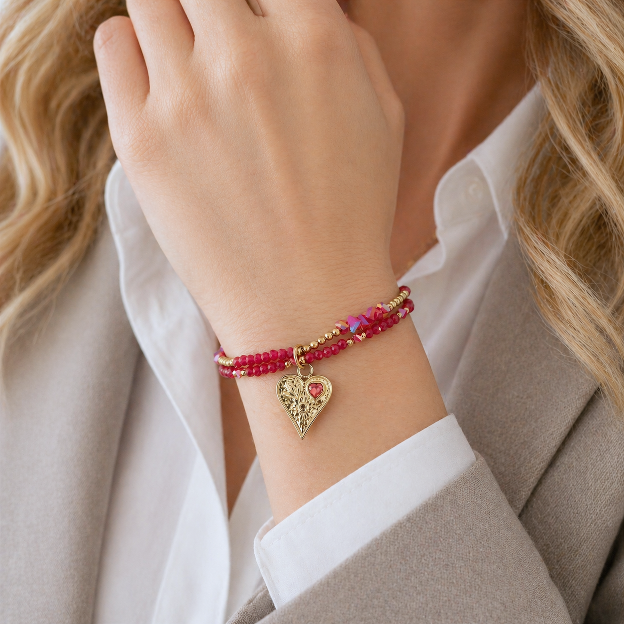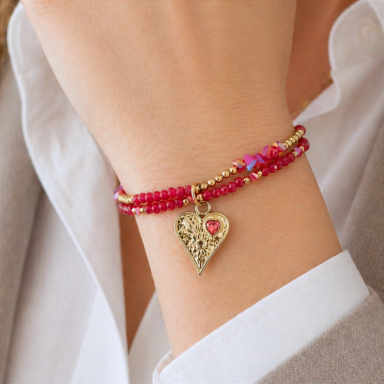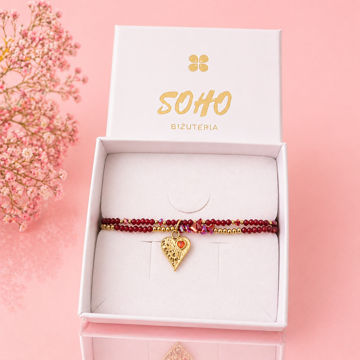 Zestaw bransoletek serce kryształy bordowe koraliki ze STALI CHIRURIGCZNEJ Premium
