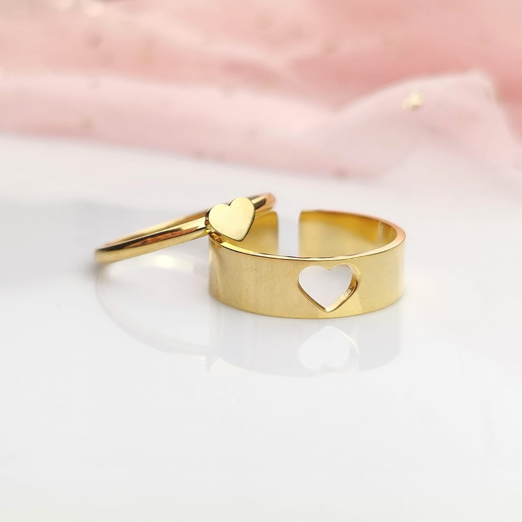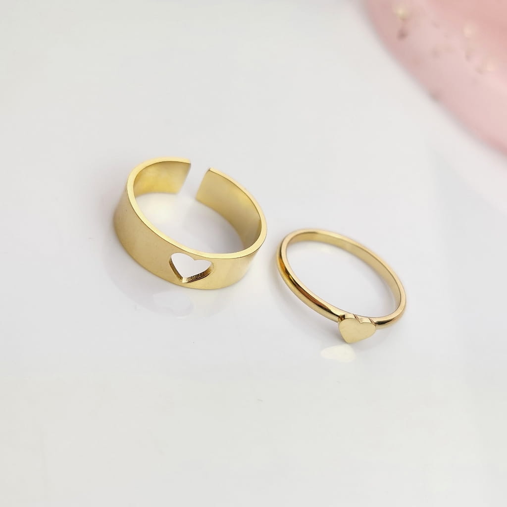Zestaw pierścionków STAL CHIRURGICZNA serduszko kolor złoty