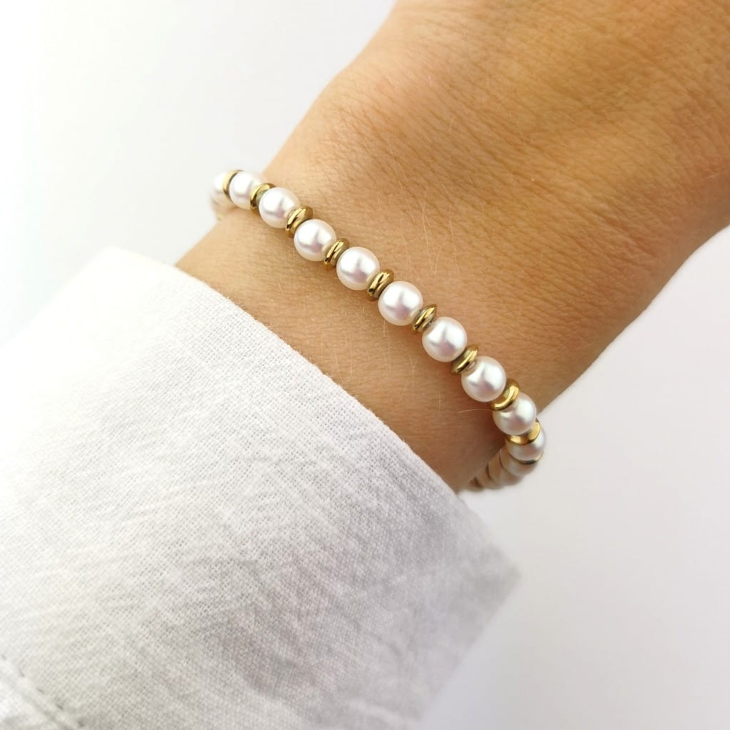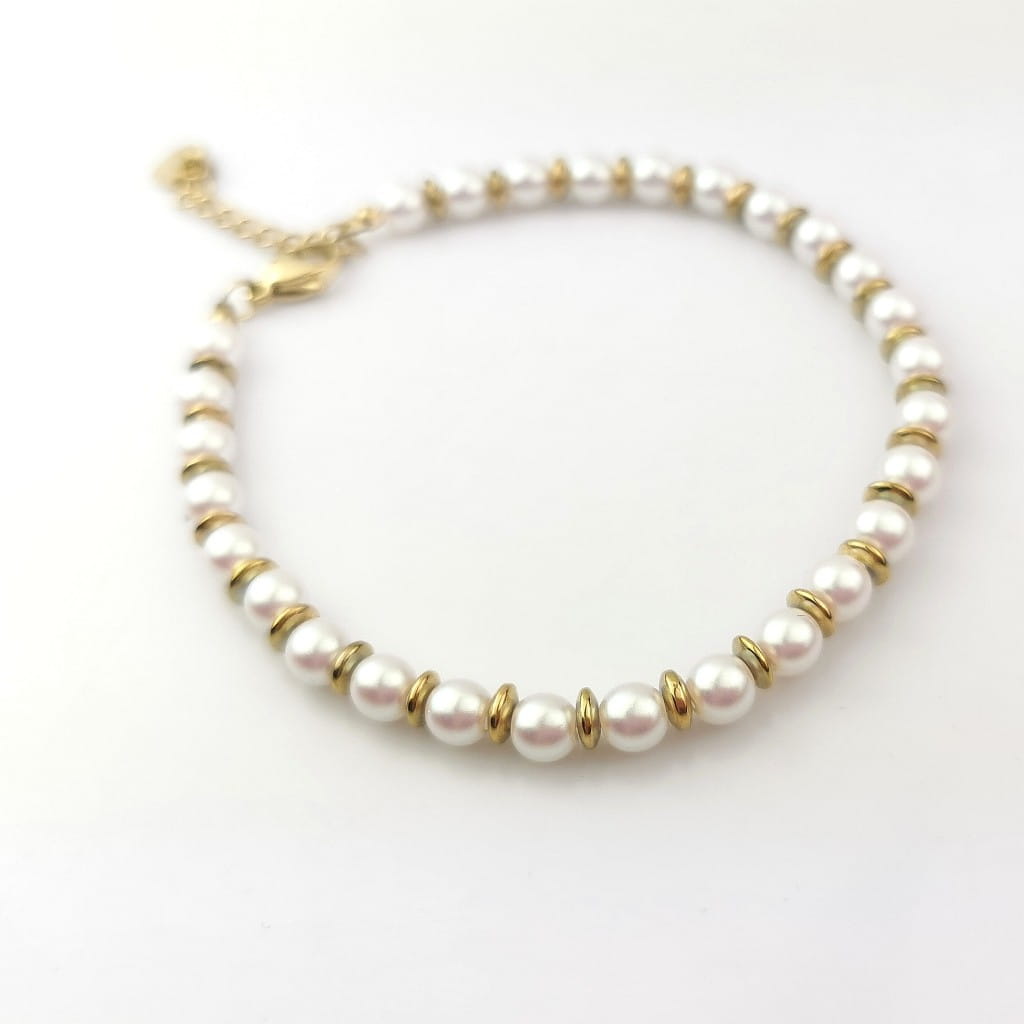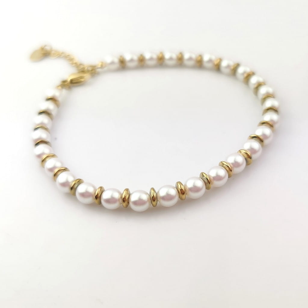 Złota bransoletka STAL CHIRURGICZNA perły złote koraliki