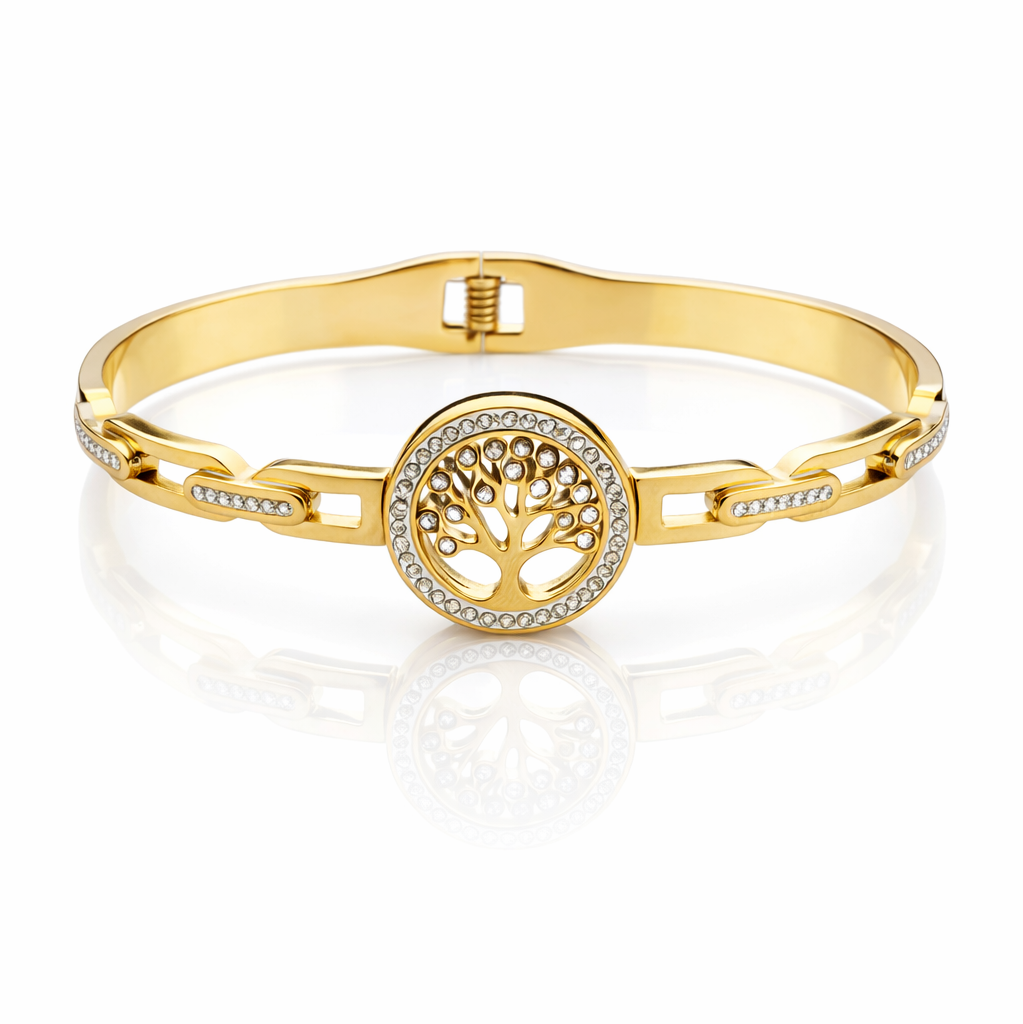 Złota bransoletka drzewko szczęścia kryształy STAL SZLACHETNA