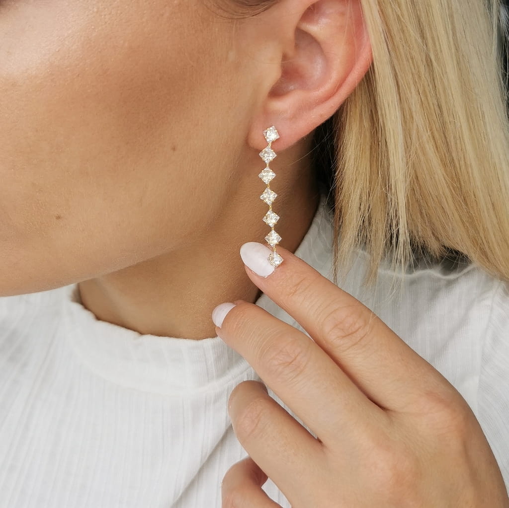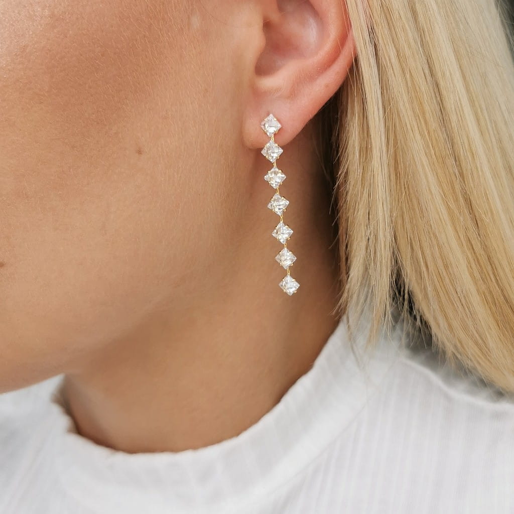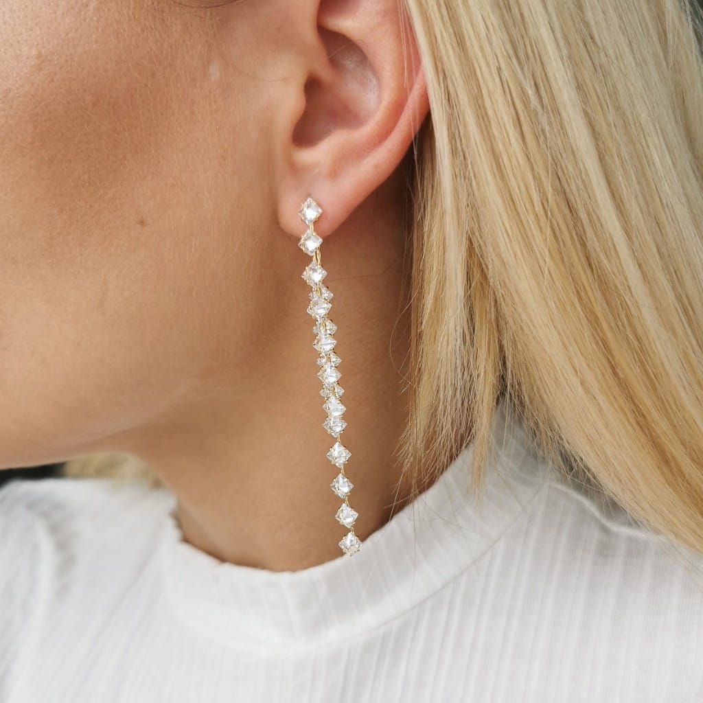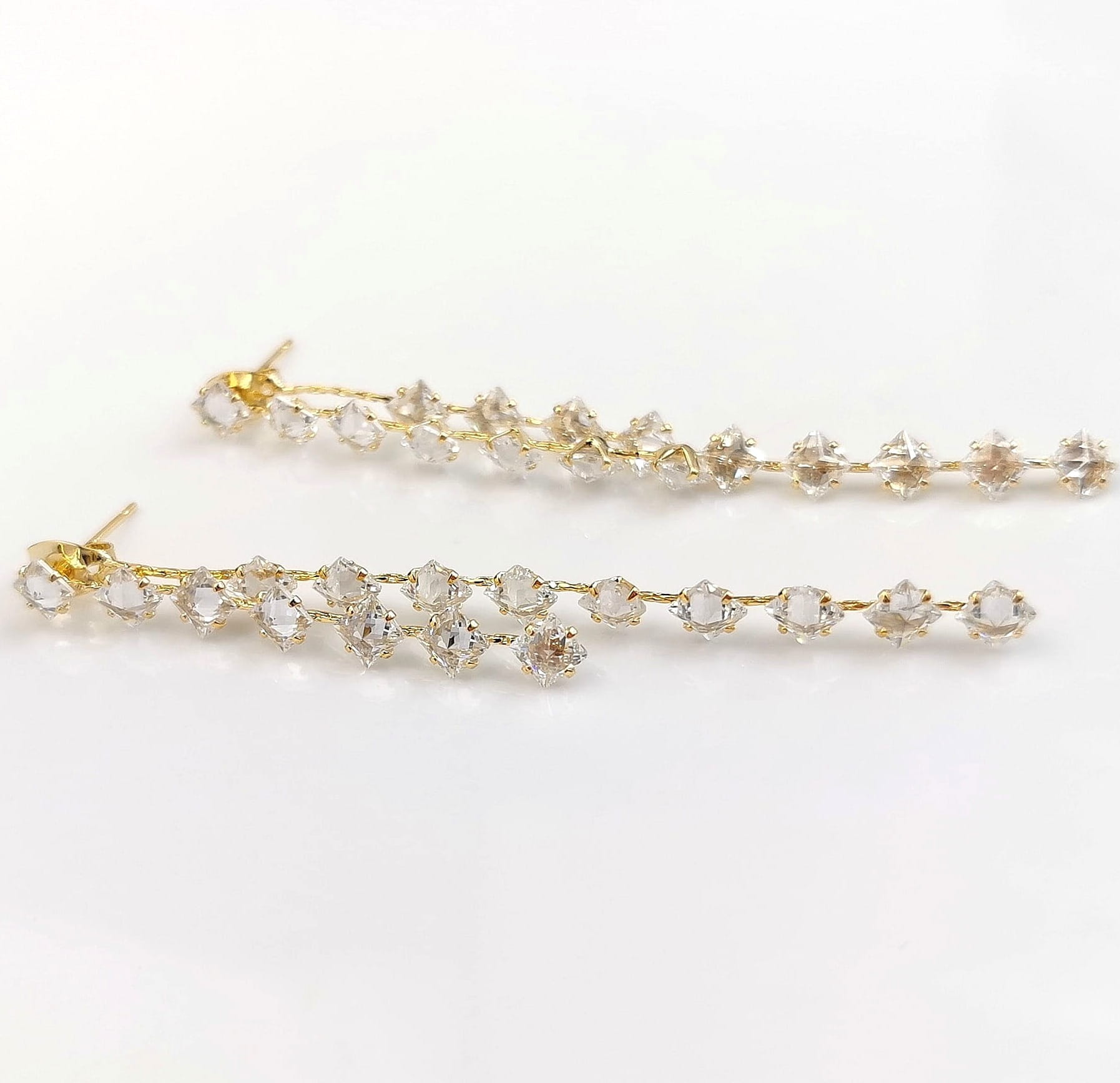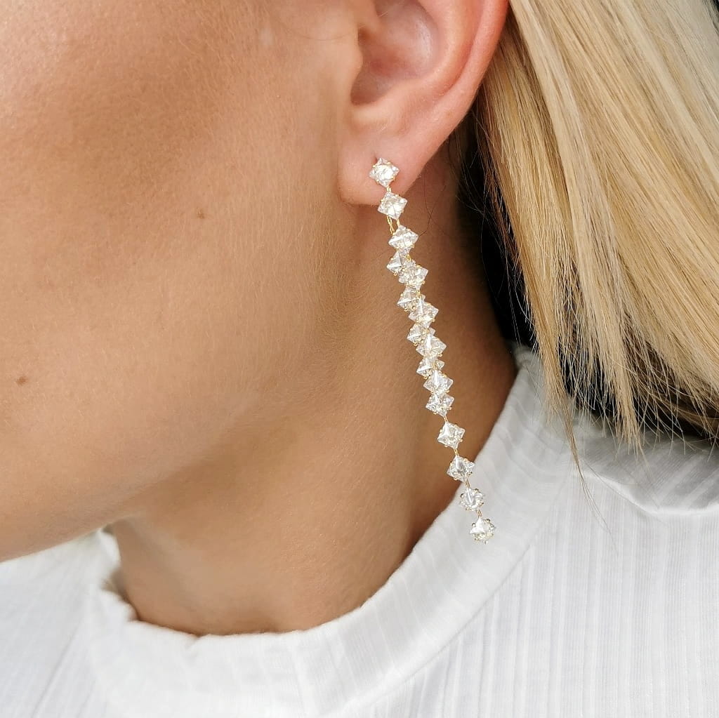 Złote kolczyki wiszące kryształy 2w1 STAL CHIRURGICZNA