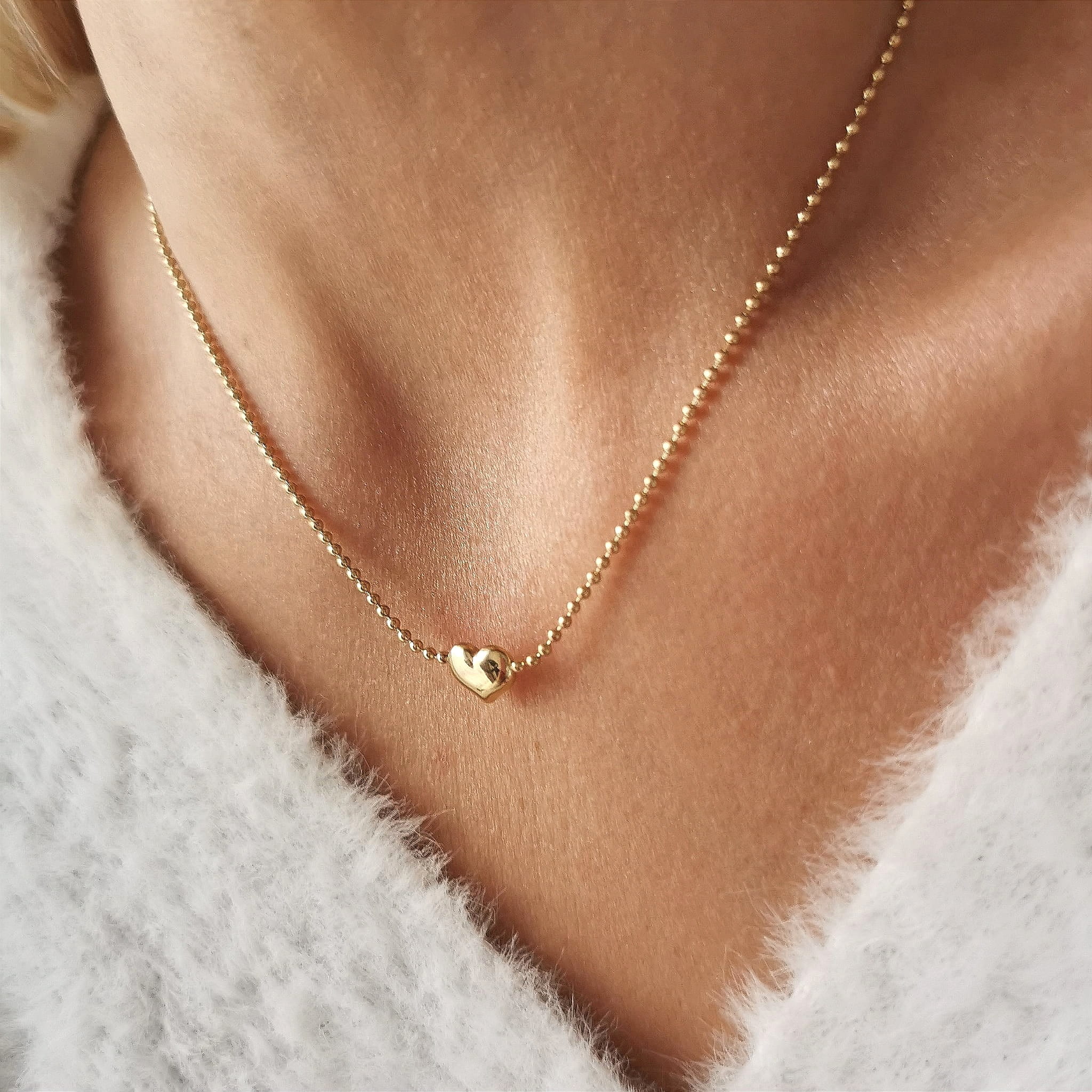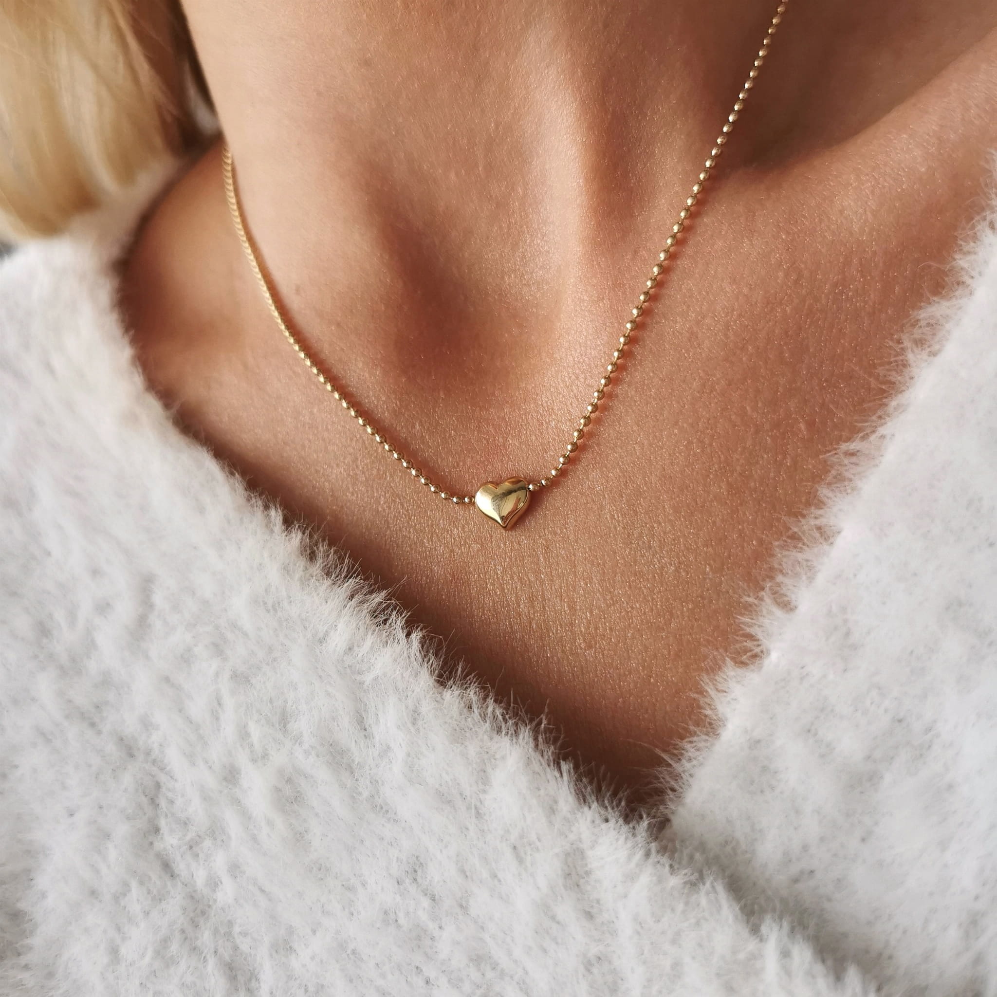 Złoty naszyjnik SERCE kulki ze STALI CHIRURGICZNEJ