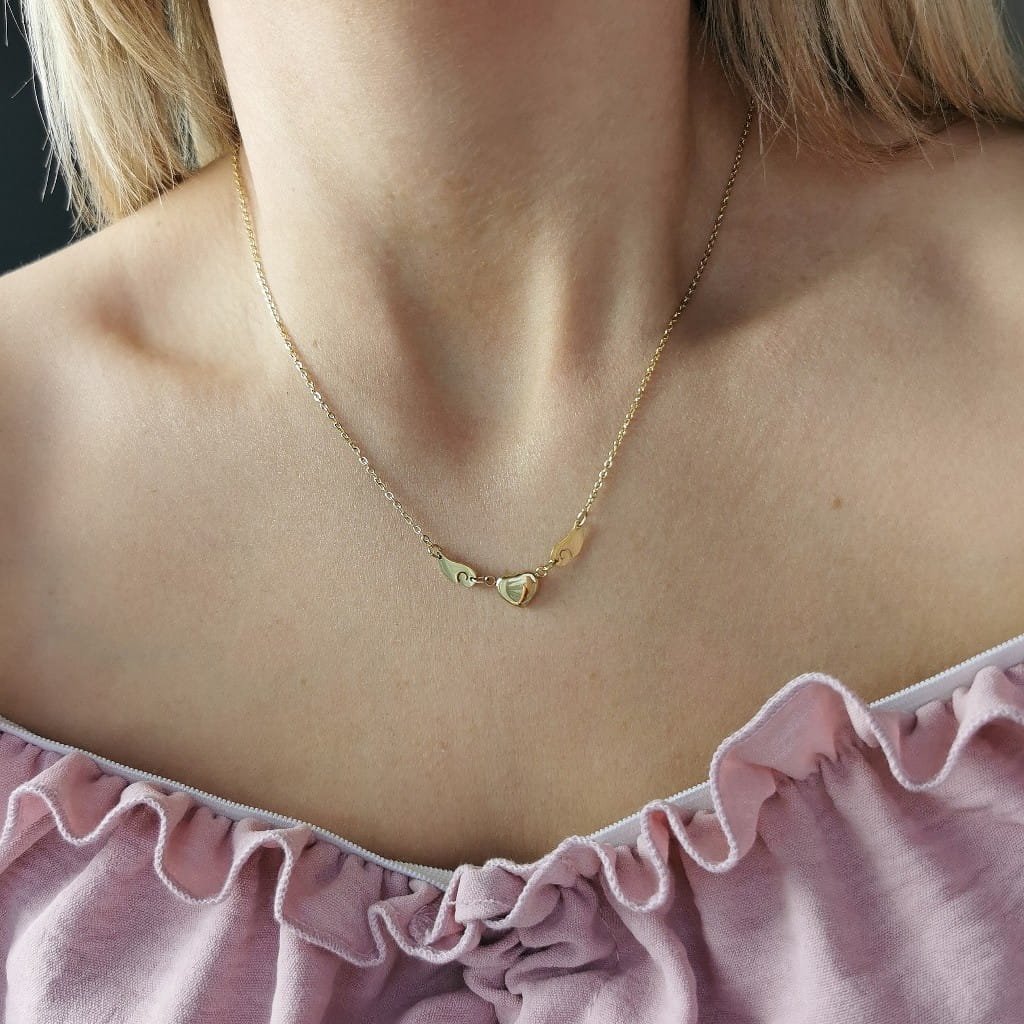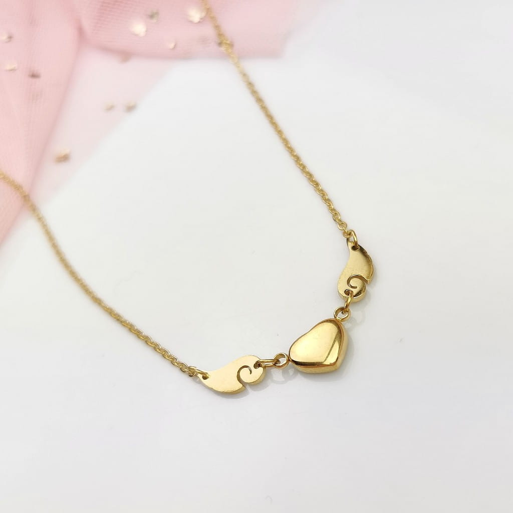 Złoty naszyjnik ze STALI CHIRURGICZNEJ serce skrzydła