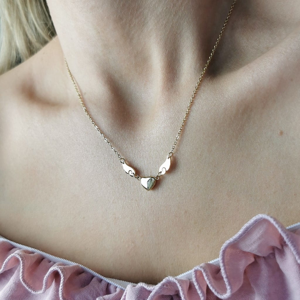 Naszyjnik z najnowszej kolekcji SOHO Biżuteria, wykonany z wysokiej jakości stali chirurgicznej, pozłacany 14k złotem. Naszyjnik ze złotym serduszkiem i ażurowymi skrzydłami. Bestsellerowy model. Stylowy dodatek, który musisz mieć w swojej kolekcji biżuterii.