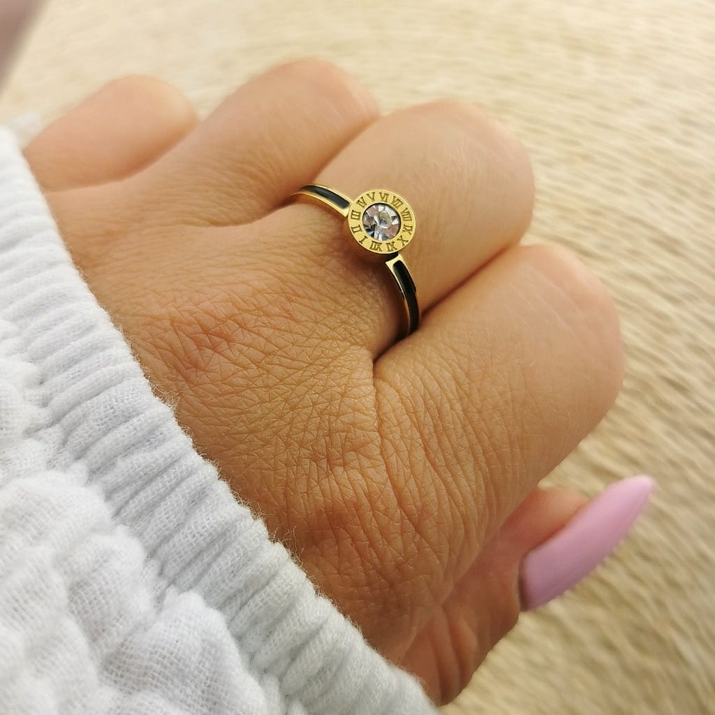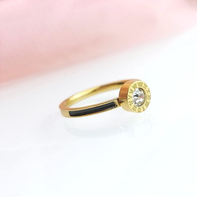 Złoty pierścionek ze STALI CHIRURGICZNEJ kryształ zegar